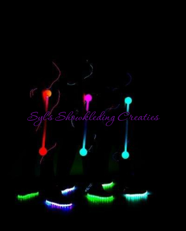 De baton is licht van gewicht , +- 55 cm lang en heeft aan de uiteinde silicone/rubberen ballen.