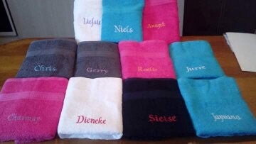 Deze handdoeken worden speciaal geborduurd voor u, door ons.